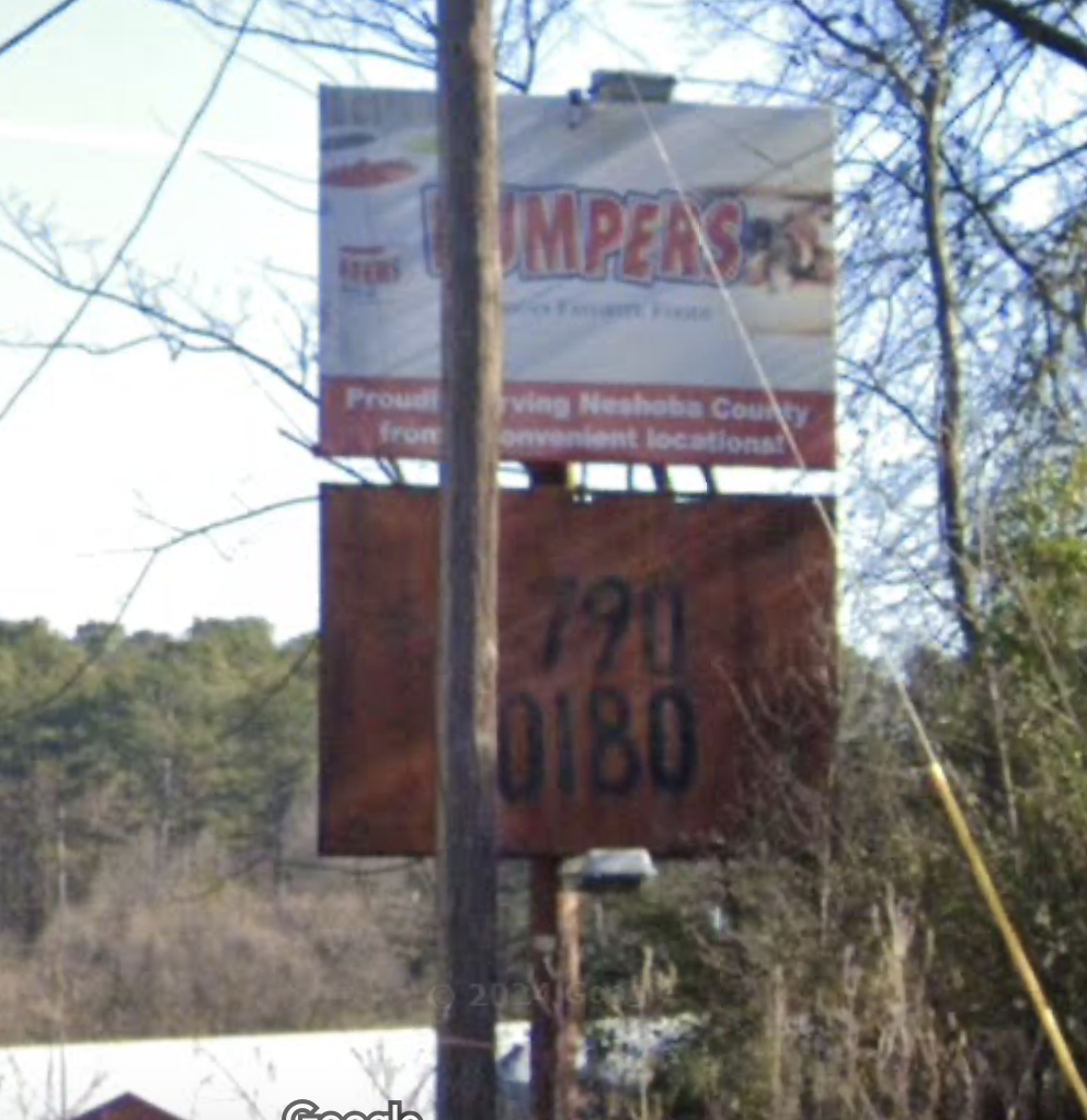 12x24. illuminated. Facing traffic southbound, bottom. E/S of Hwy 15 N, 3/10 of a mile S of Hwy 32. 1798 Hwy 15 N Houston MS